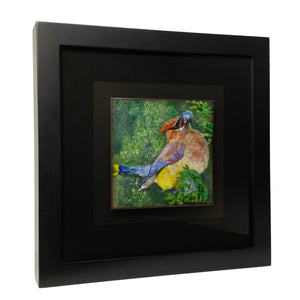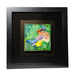 This handmade Vitreous Enamel Art can be hung on your wall, displayed on a shelf, or placed on a tabletop. The overall presentation is enhanced by the enamel panels appearing to float above the elegant acrylic background in a deep gallery frame. Each wall piece is completed with a hanging wire and a dust cover backing. We also include: information about your special piece and the artist, a complimentary wall hanger with nail, and felt bumpers - so you are ready to hang your new piece the minute it arrives!