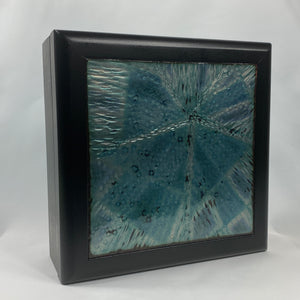 Stunning silver shines through and highlights the grayed blues and soft turquoises of this textured abstract star design! For centuries vitreous enameled objects have been highly prized as interior accessories, and the Blue Star Rising Jewelry Box is no exception. This versatile and durable work of art can fit in anywhere and will bring a touch of beauty and unexpected functionality wherever you place it.